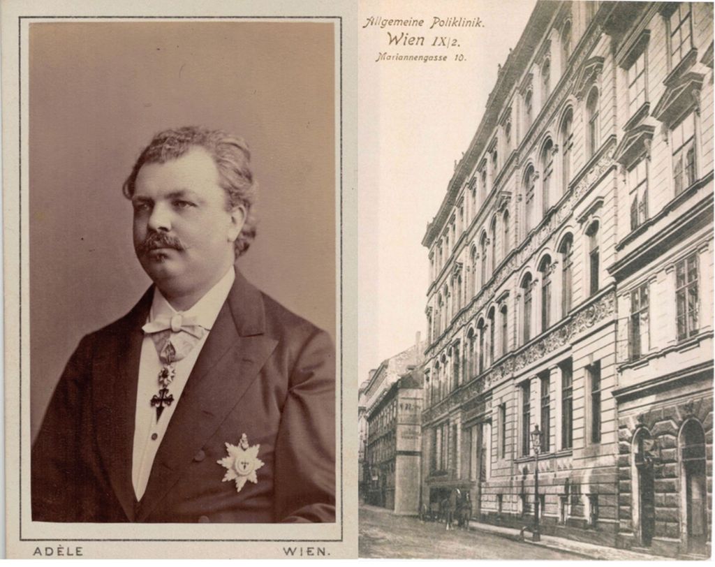 Abb. 3: A: Robert Ultzmann. B: Allgemeine Poliklinik, Mariannengasse 10, 1090 Wien