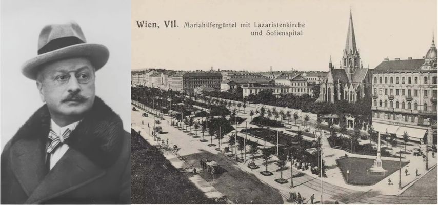 Abb. 5: A: Viktor Blum. B: Ansichtskarte Sophienspital am Mariahilfer Gürtel 1904–1908