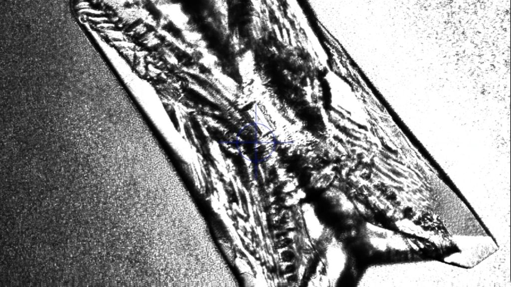 Abb. 1: Mikroskopische Darstellung eines Struvitkristalles durch Anzüchtung von Proteus mirabilis in artifiziellem Urin. Quelle: eigene Forschungsarbeit