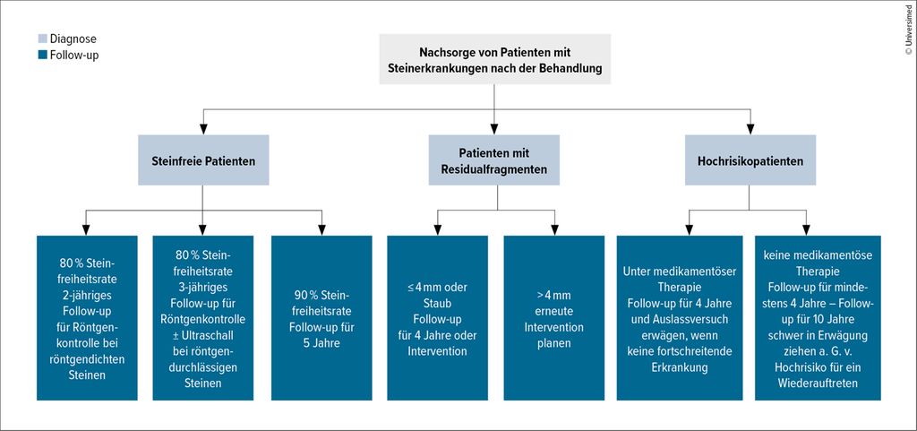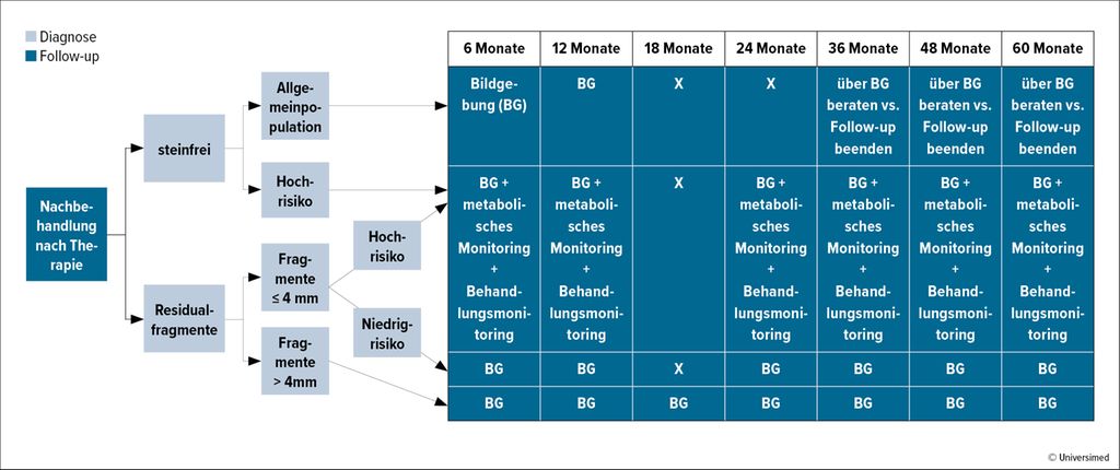 Bei Steinfreiheit empfiehlt sich eine zwei- bis dreijährige bildgebende Nachsorge.