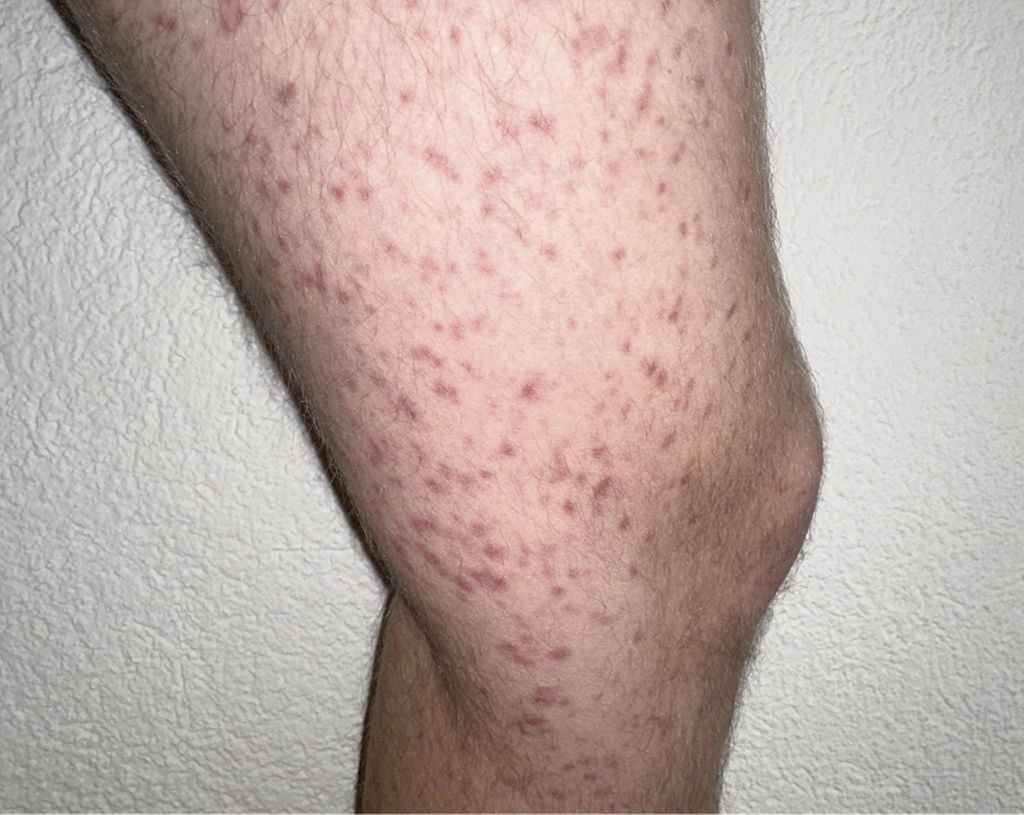 Fig.1: Mastocytose cutanée ou systémique en cas de lésions cutanées typiques avec infiltrats mastocytaires? Avec l’aimable autorisation.