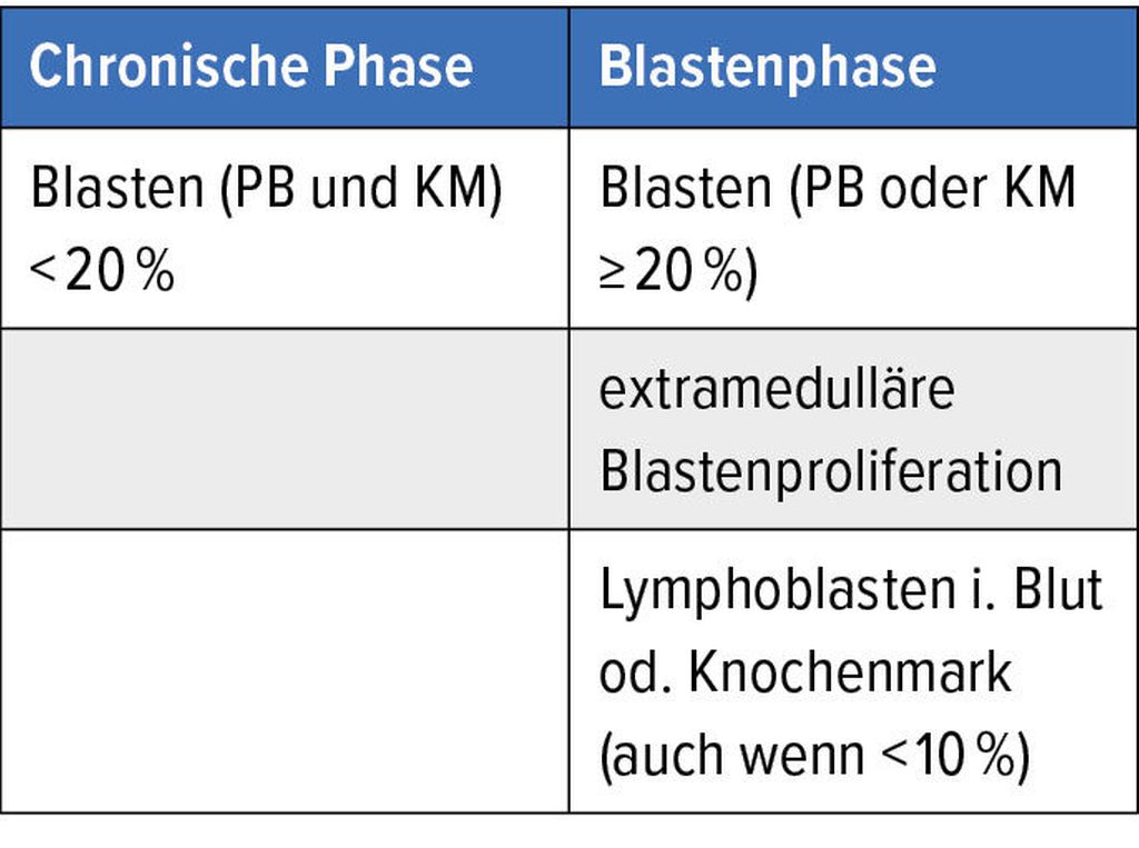 In der TKI-Ära gibt es in der Stadieneinteilung der CML nur mehr die chronische Phase und die Blastenphase.