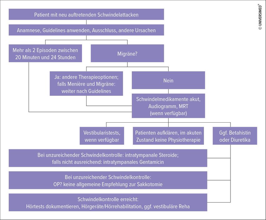 Die AAO-HNS (American Academy of Otolaryngology-Head and Neck Surgery) publizierte 2020 einen Leitfaden zum besseren praktischen Vorgehen bei Patienten mit Morbus Menière.13 Dabei wurde der Fokus auf die klinische Relevanz der Diagnose gelegt und Therapieempfehlungen ausgesprochen.