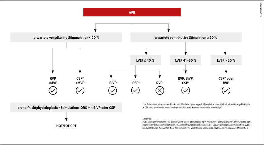 Abb. 1: Zusammenfassung der CSP-Indikationen bei atrioventrikulärem Block (nach Glikson M et al. 2025)